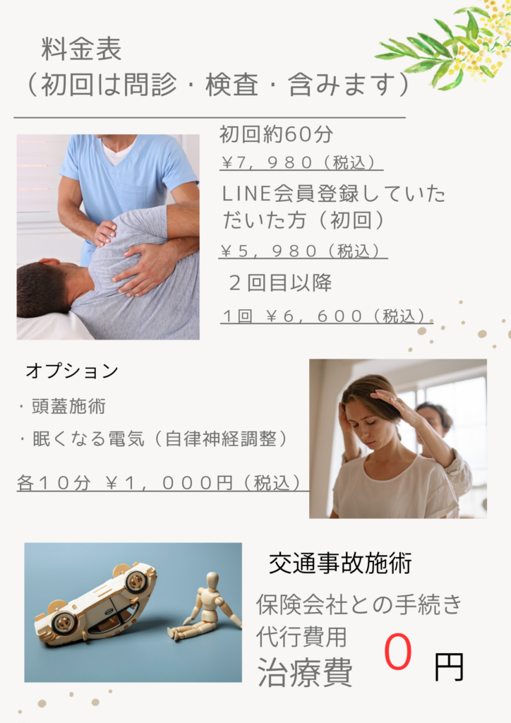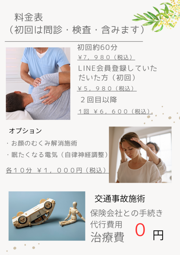 豊富な経験を活かし、むち打ちや打撲、関節のズレなど事故特有の症状に的確に対応します。痛みの根本原因を見極め、無理のない施術で回復をサポート。保険対応や手続きの相談も丁寧に行い、不安を抱えた被害者の心にも寄り添います。早期改善と再発防止を目指した安心の施術を心がけています。